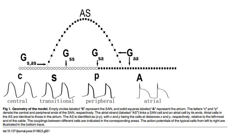 :The Functions of Atrial Strands Interdigitating with and Penetrating into Sinoatrial Node: A Theoretical Study of the Problem, Xiaodong Huang*, and Xiaohua Cui, PLoS ONE,10(3):118623.