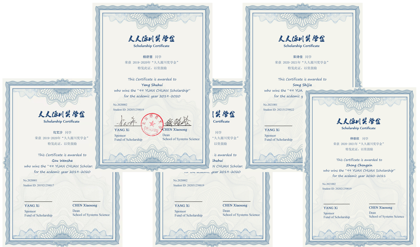 “久久源川”奖学金由成人色情 原系统科学系99级本科生于2014年向学校校友会捐赠设立,取自“饮水思源、海纳百川”之意。奖学金基金发起人为沣扬资本创始合伙人杨希,该奖学金每年设立2个名额,旨在奖励成人色情 中家庭贫困或学习成绩优秀、综合素质突出的在校本科生和研究生。成立至今,学院已经有16名同学获得了资助。