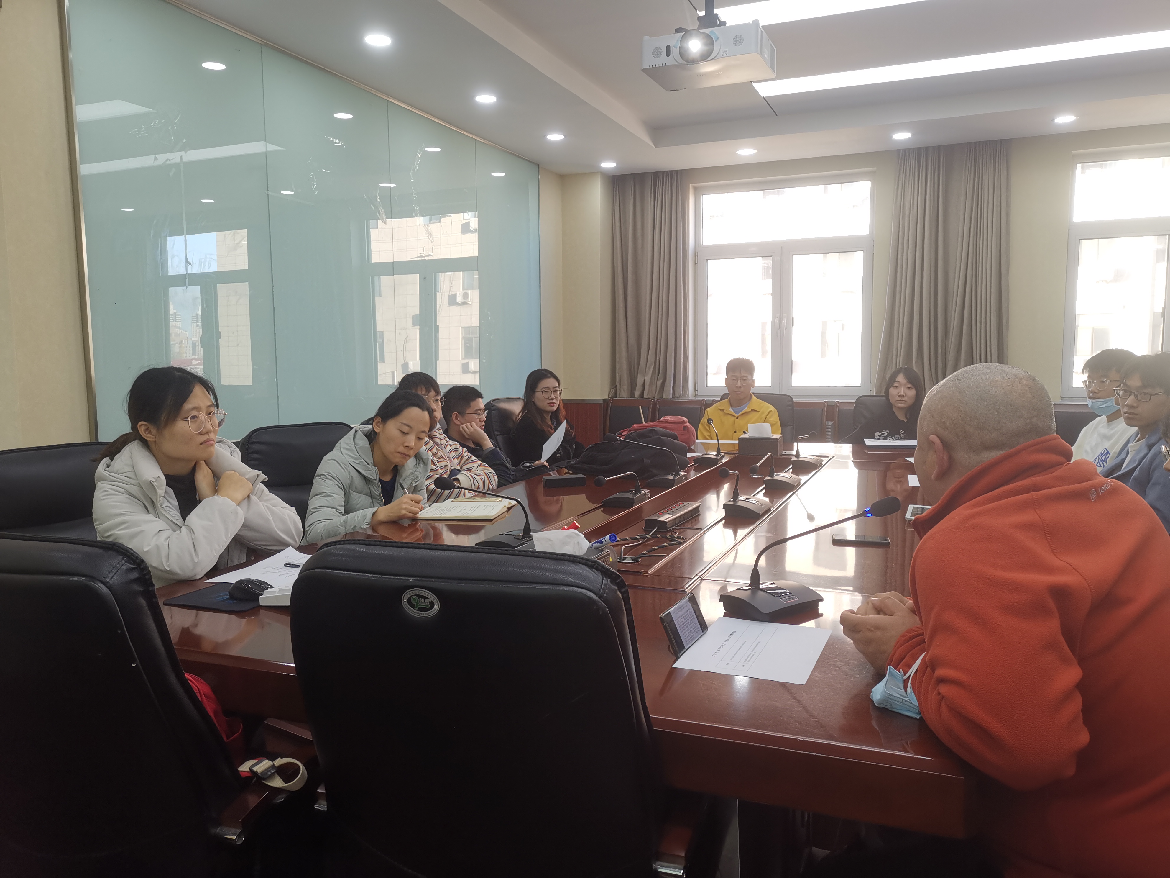 2021年11月10日下午15:30,在科技楼B区608,学院组织开展了第十四期“副书记工作室”交流会。会议由研究生会权益部副主席仲崇欣主持。党总支书记周亚老师、团委书记王娟老师参会,并邀请到了尾号为3的同学参加。