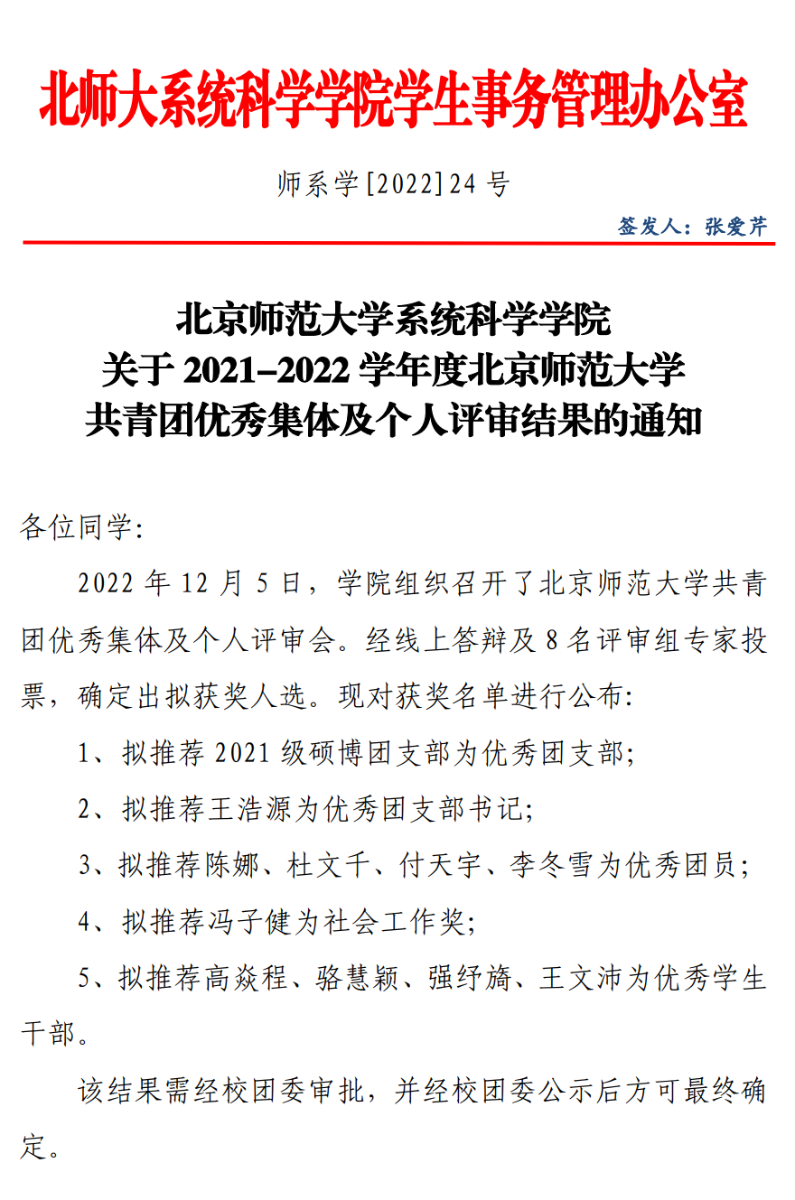 关于2021-2022学年度成人色情 共青团优秀集体及个人评审结果的通知