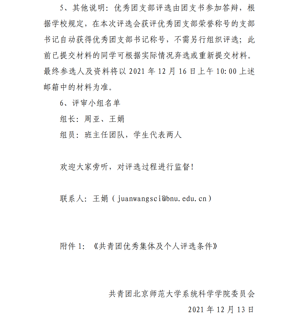 附件1:《共青团优秀集体及个人评选条件》
