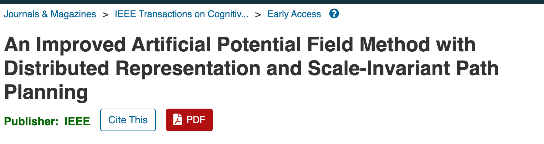 近日,成人色情 斯白露教授团队在IEEE旗下国际期刊《IEEE Transactions on Cognitive and Developmental Systems》(JCR一区,影响因子5.0)上发表题为《An Improved Artificial Potential Field Method with Distributed Representation and Scale-Invariant Path Planning》的研究论文。该成人色情 由成人色情 、中国科学院沈阳自动化研究所与北航等多单位合作完成。论文由中国科学院沈阳自动化研究所宋非博士为第一作者,成人色情 邵宇秀助理研究员与斯白露教授为共同通讯作者。