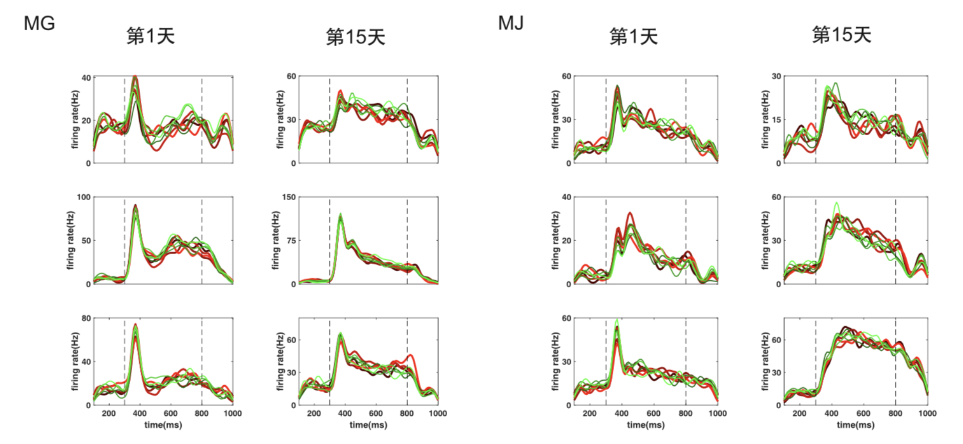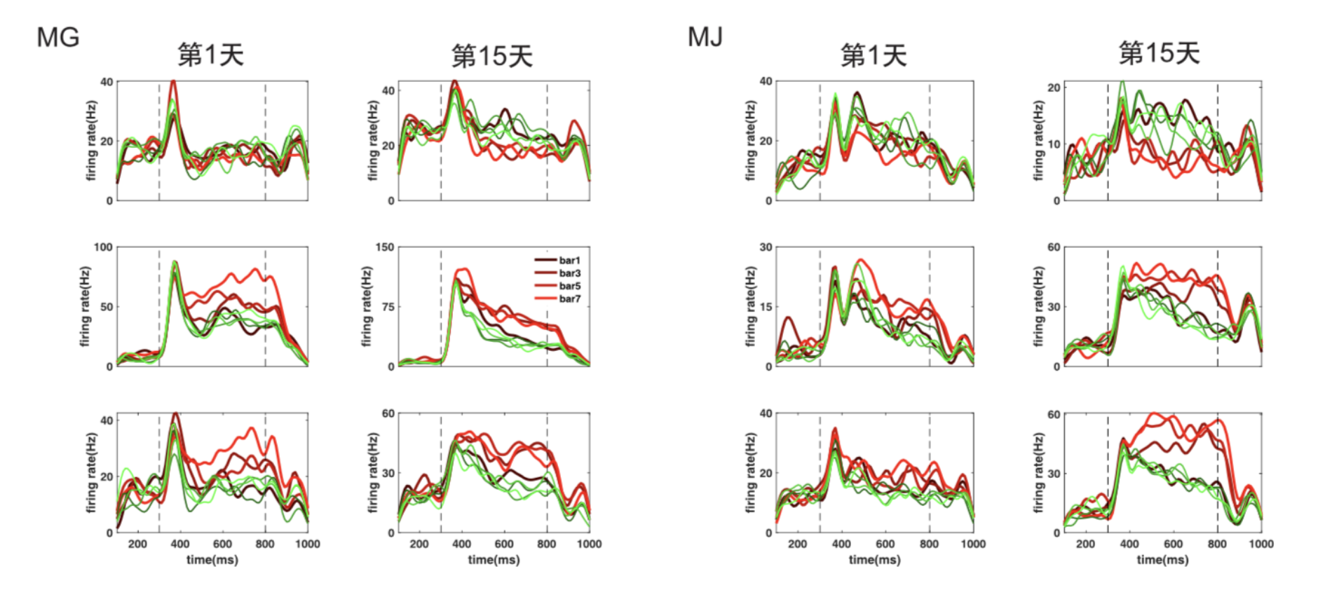 图2 代表性神经元对不可检测轮廓线刺激的响应