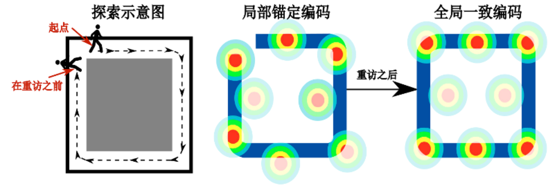 图注:全局一致编码理论。通过内嗅皮层-海马神经环路的交互作用能够使用网格细胞形成全局一致的空间编码,从理论上证明了网格细胞可以作为空间导航的统一空间度量。