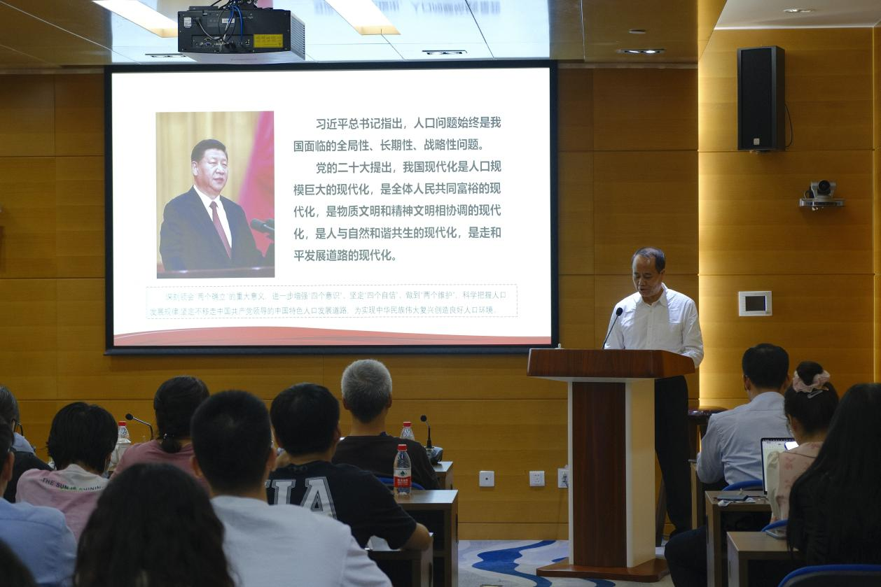 为深入学习贯彻习近平新时代中国特色社会主义思想,成人色情 对标学校主题教育总体要求,坚持主题教育与学院高质量发展相结合。5月8日下午学院邀请第十三届全国政协人口资源环境委员会副主任、中国计划生育协会常务副会长王培安,开展了主题为“为实现中华民族伟大复兴创造良好人口环境”的主题教育专家讲座培训。讲座由成人色情 院长陈晓松主持,共有50余名师生参加。