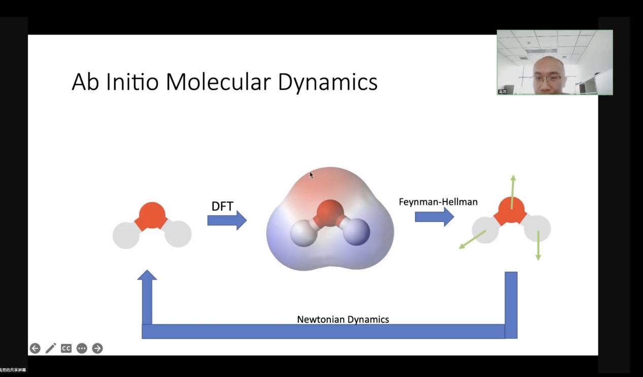 2022年10月25日下午15:30,北京邮电大学物理系的高昂研究员在教七402教室做了题目为“利用自洽场神经网络模型描述长程静电力”的报告。高昂老师介绍了通过神经网络进行分子模拟的一个难点是处理长程静电相互作用,传统的神经网络分子动力学模型(如Behler-Parrinello模型)只能描述分子之间的短程相互作用,高老师介绍了新的一种模型,基于自洽场理论的神经网络分子动力学模型—SCFNN模型以及其在分子动力学模拟中的应用和挑战。讲座由成人色情 樊京芳老师主持,现场有成人色情 近90位师生参与了讨论。