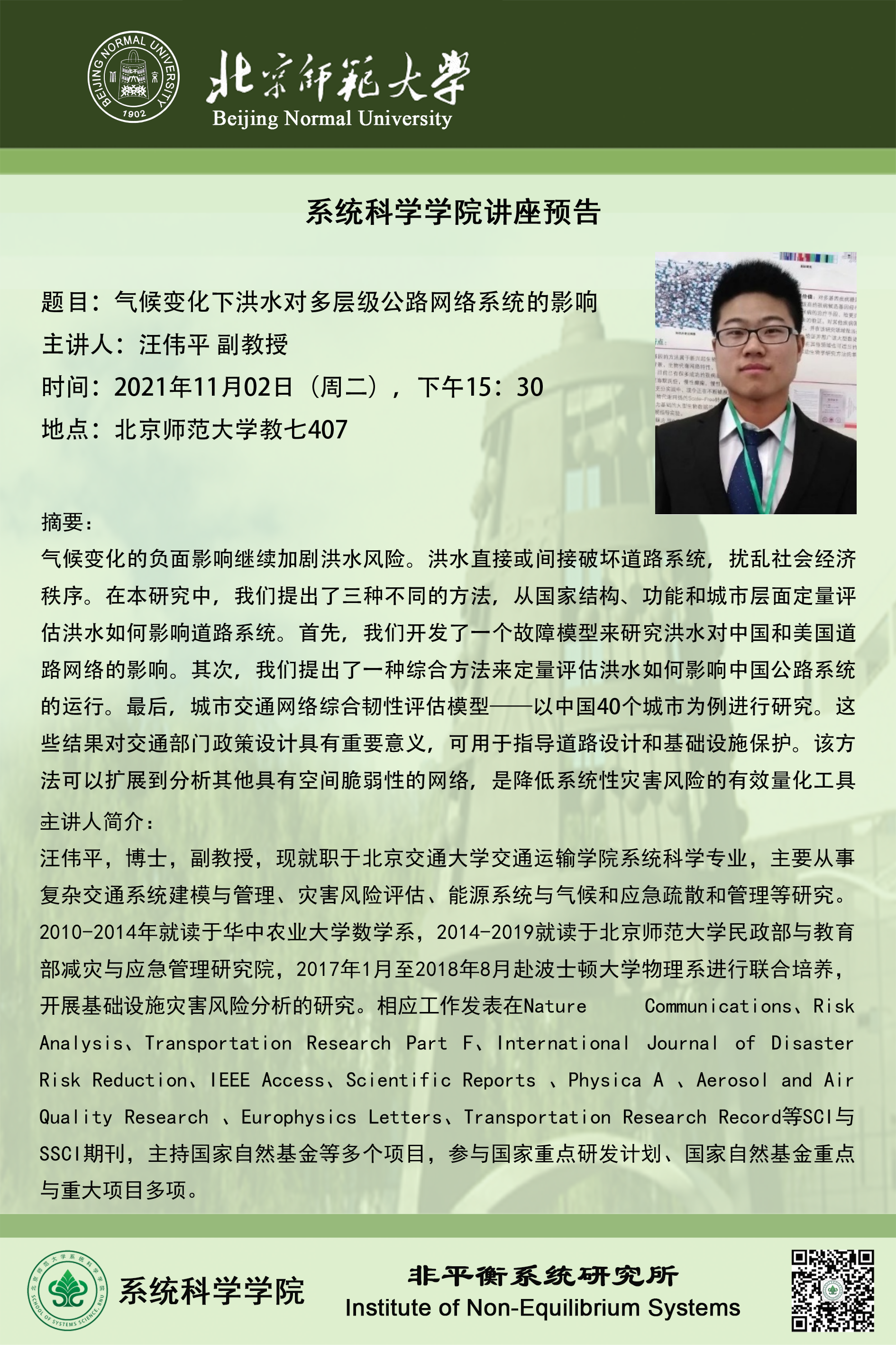 【讲座】气候变化下洪水对多层级公路网络系统的影响