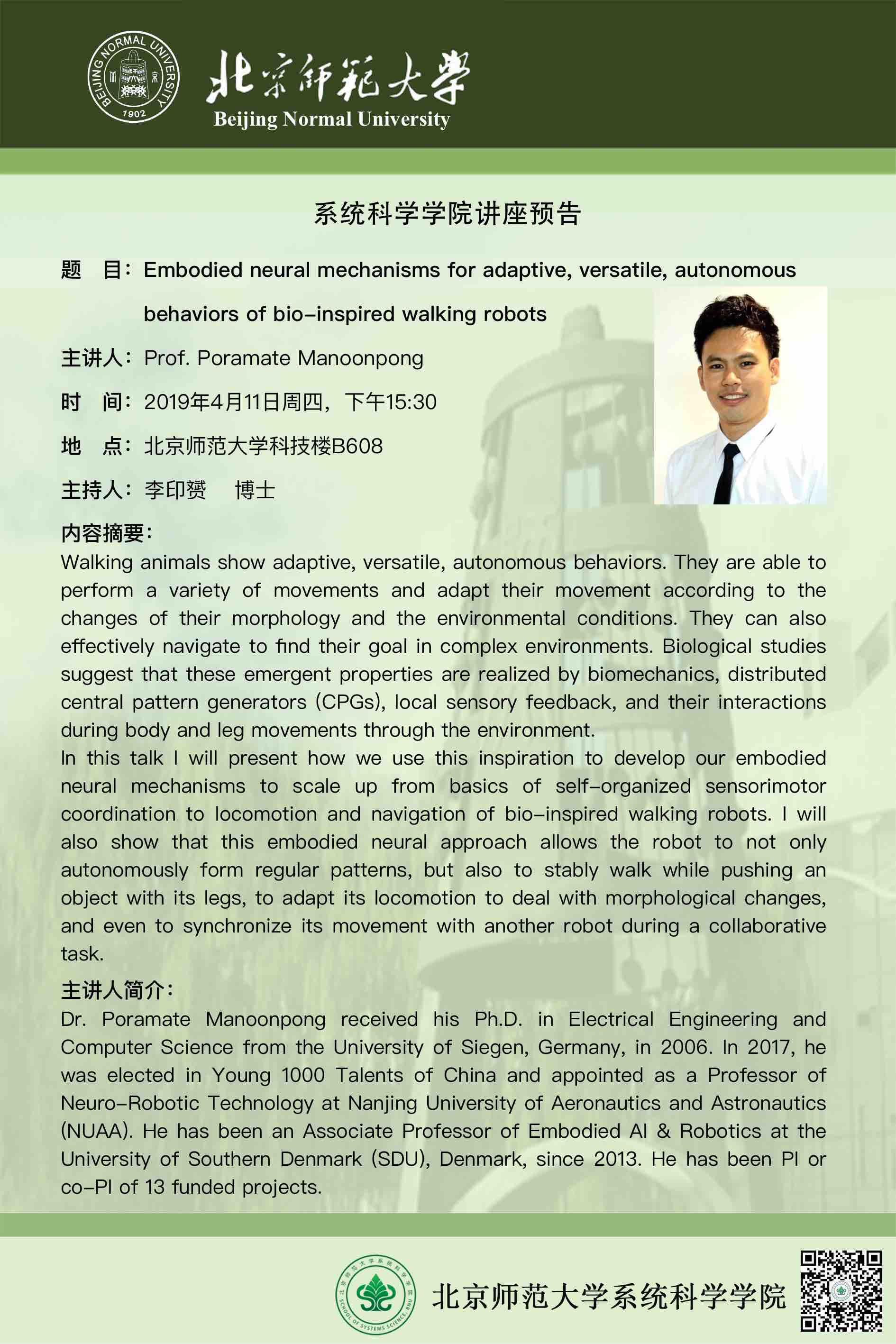 [讲座] Embodied neural mechanisms for adaptive, versatile, autonomous behaviors of bio-inspired walking robots