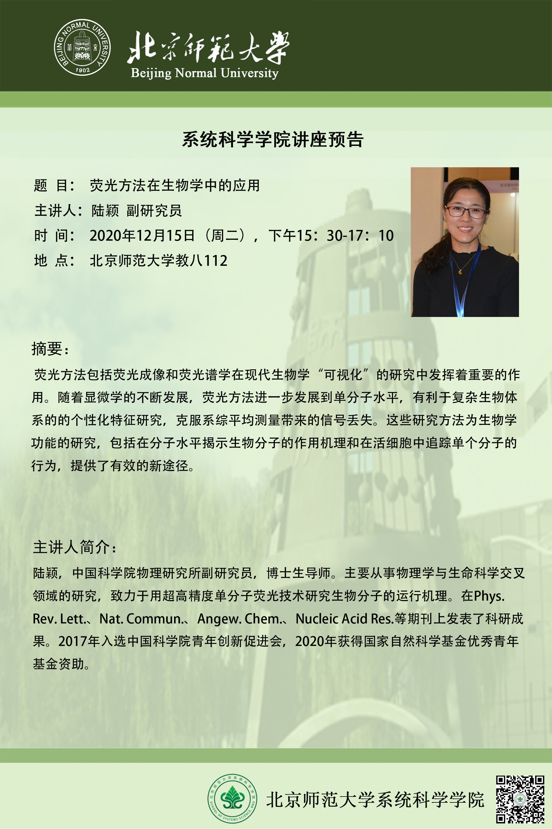 【讲座】荧光方法在生物学中的应用