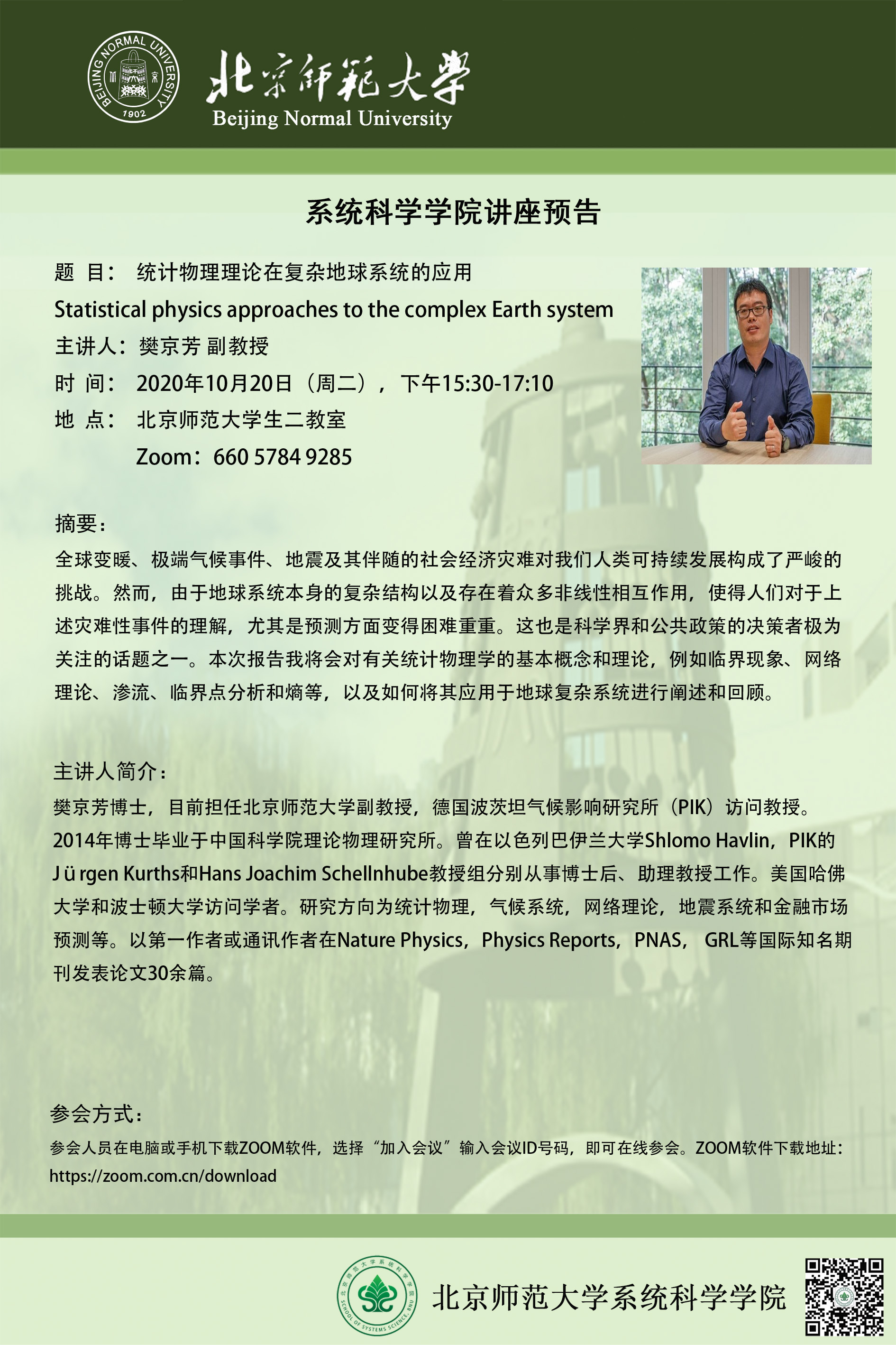 【讲座】统计物理理论在复杂地球系统的应用