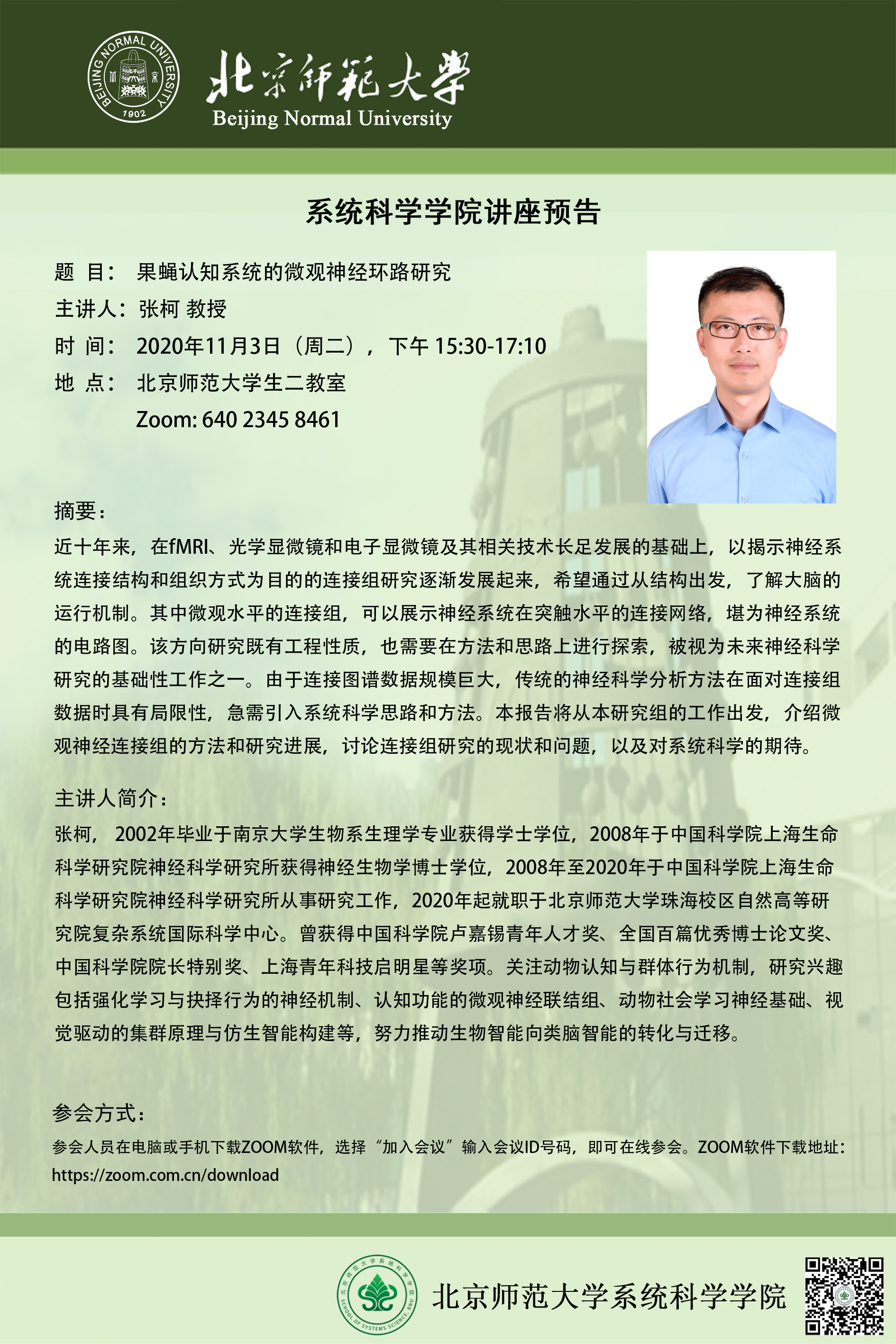 【讲座】果蝇认知系统的微观神经环路研究