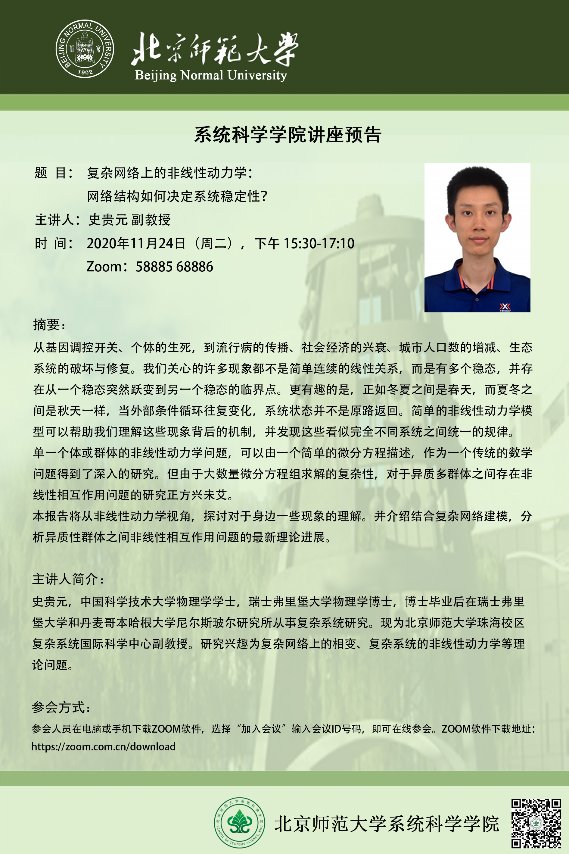 【讲座】复杂网络上的非线性动力学:网络结构如何决定系统稳定性?