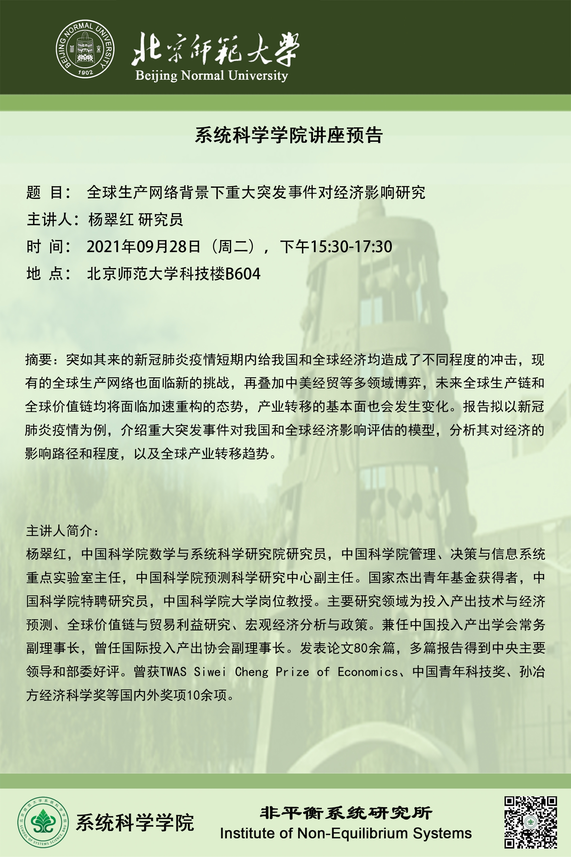 【讲座】全球生产网络背景下重大突发事件对经济影响研究