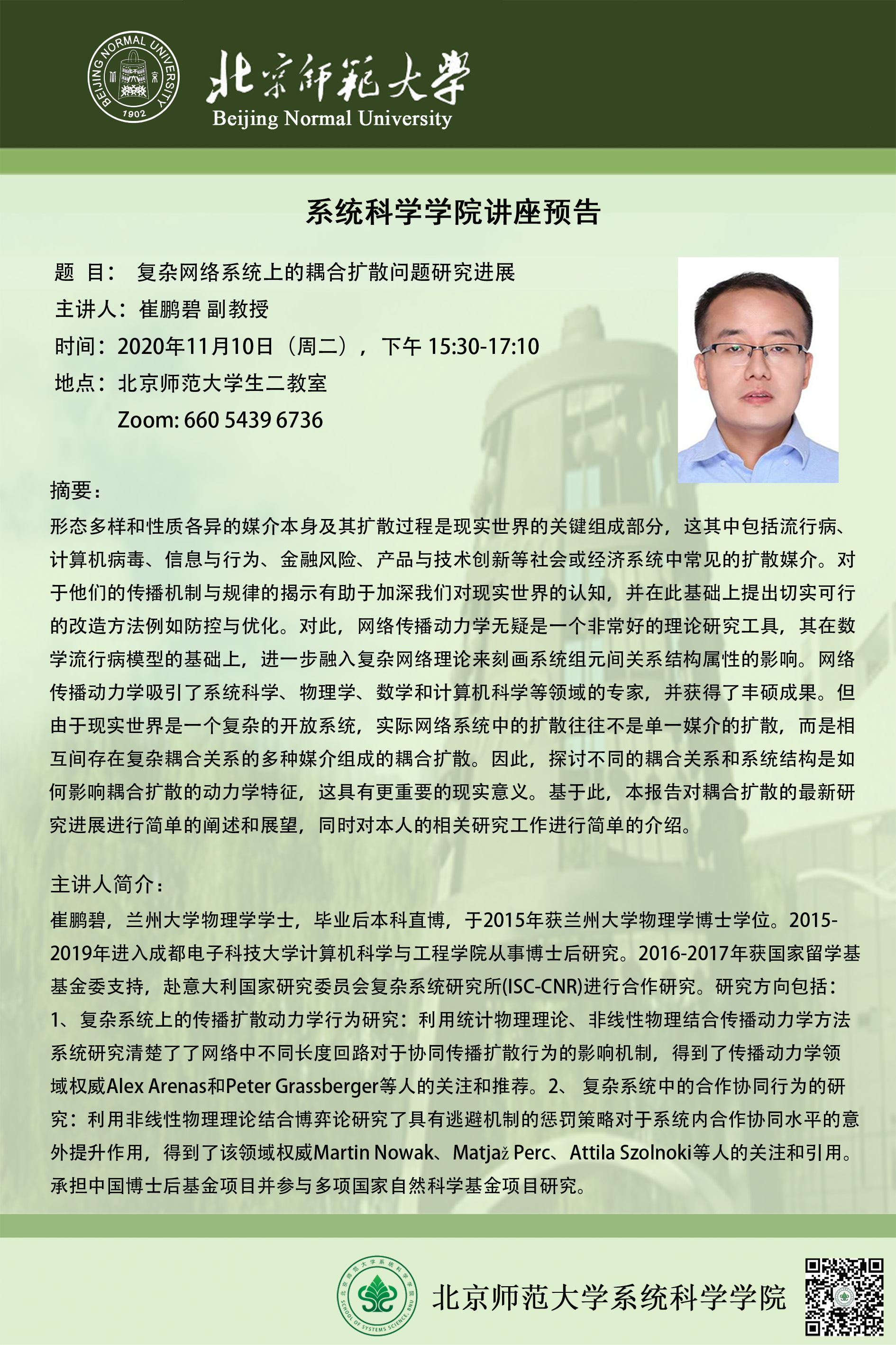 【讲座】复杂网络系统上的耦合扩散问题研究进展