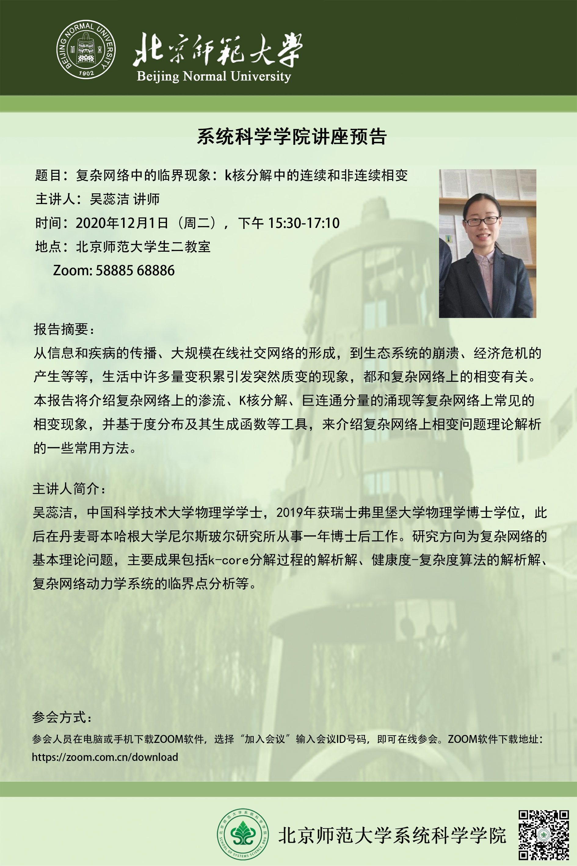 【讲座】复杂网络中的临界现象:k核分解中的连续和非连续相