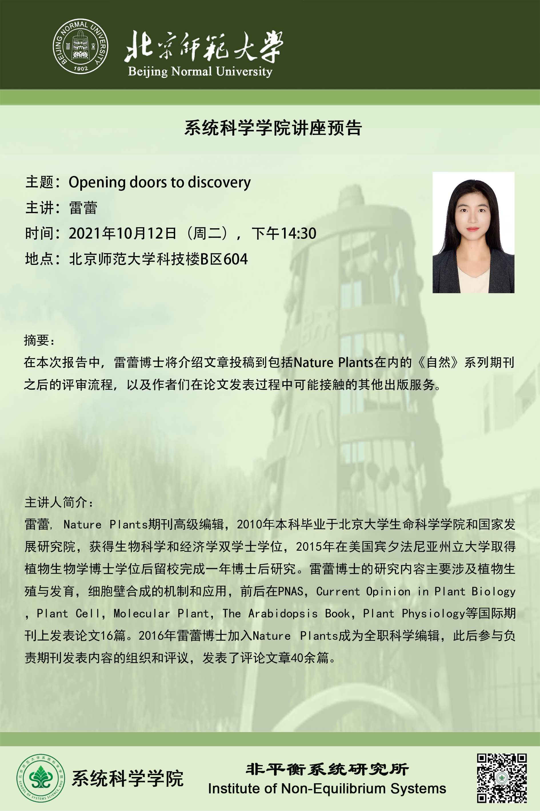 【讲座】Opening Doors to Discovery