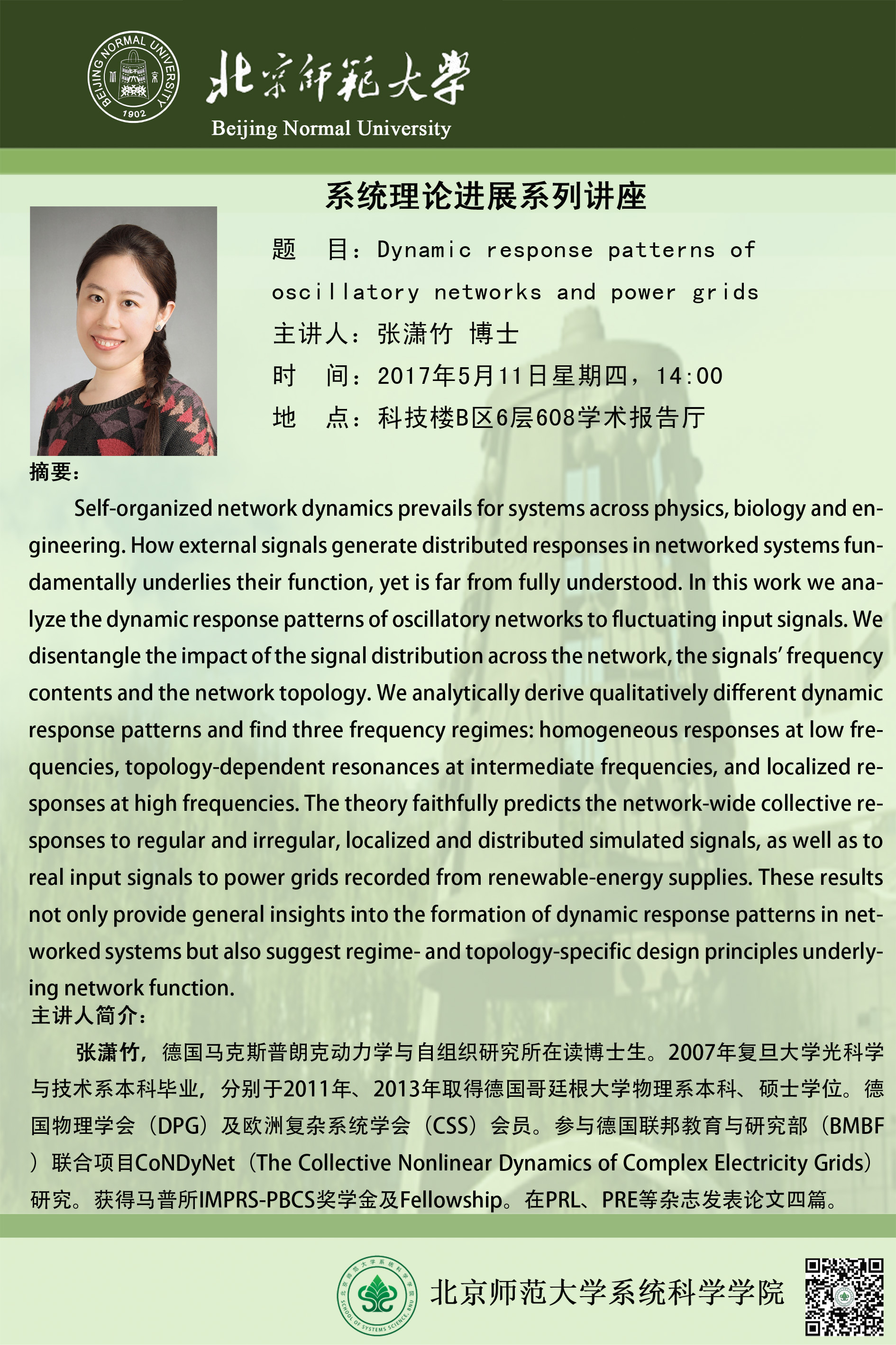 [讲座] Dynamic response patterns of oscillatory networks and power grids