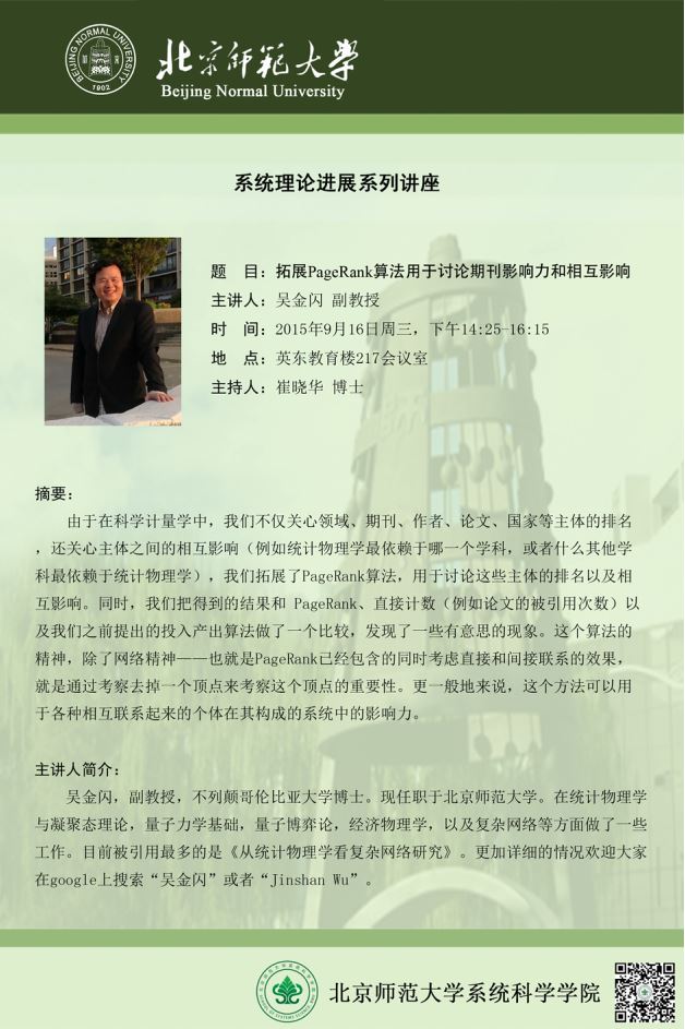 [讲座] 拓展PageRank算法用于讨论期刊影响力和相互影响
