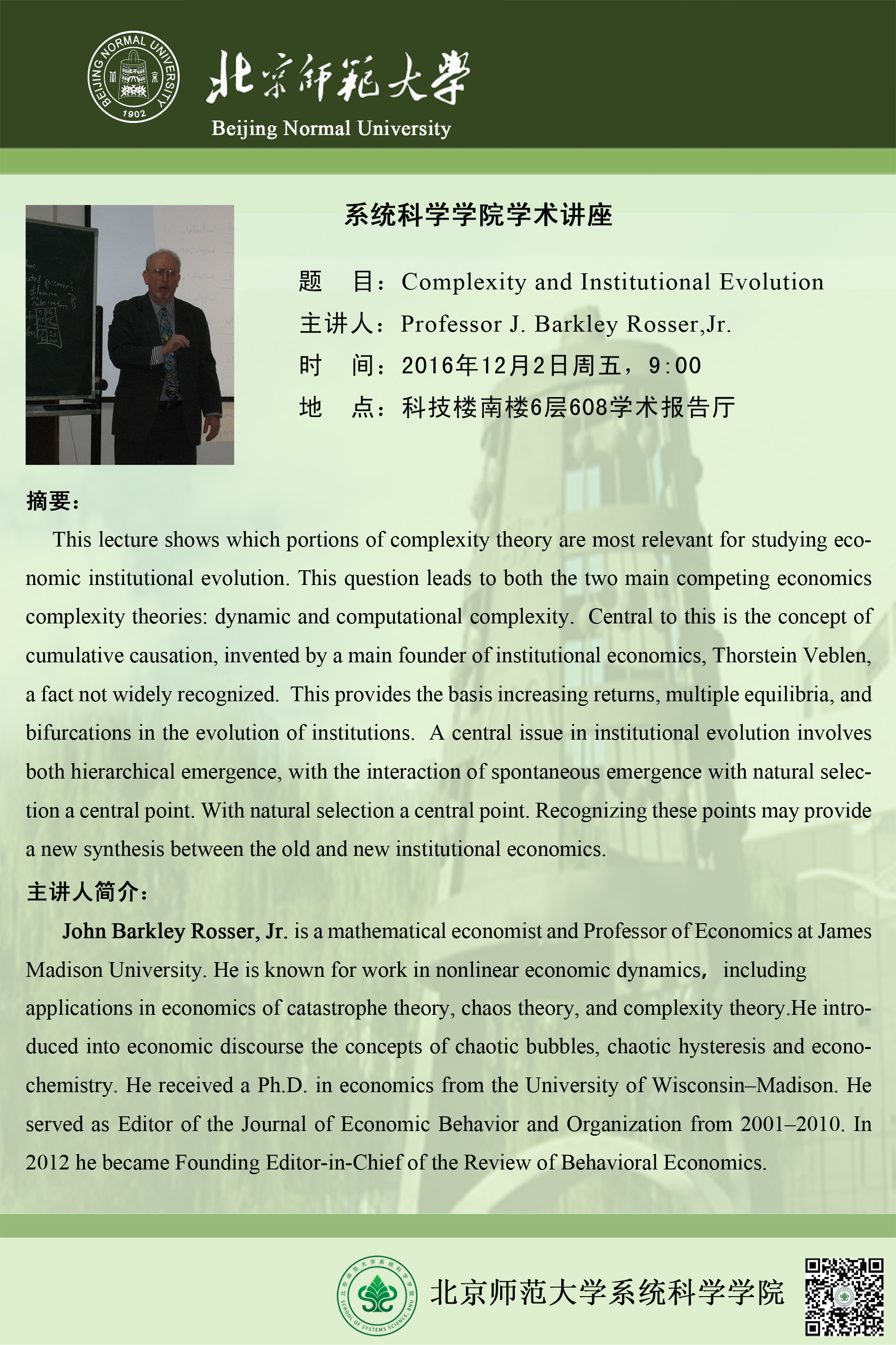[讲座] Comlexity and Institutional Evolution