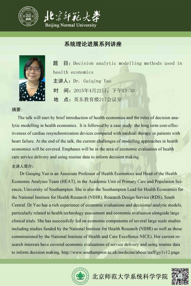 [讲座] Decision analytic modelling methods used in health econ