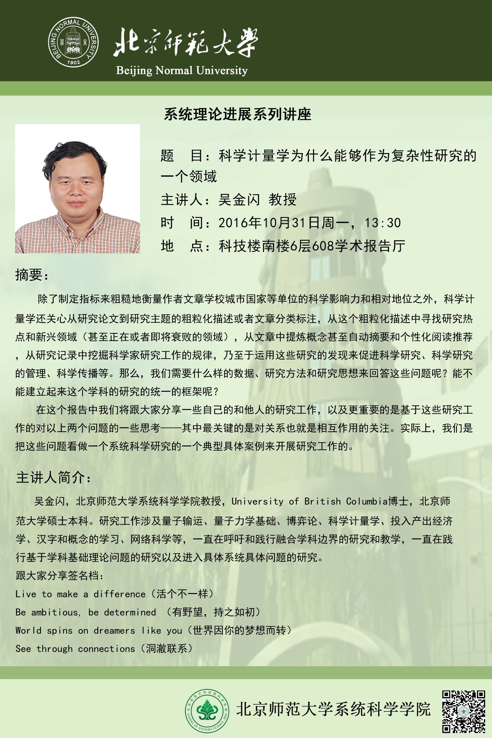 [讲座] 科学计量学为什么能够作为复杂性研究的一个领域