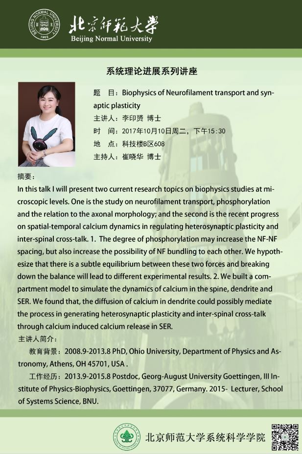 [讲座] Biophysics of Neurofilament transport and synaptic plasticity
