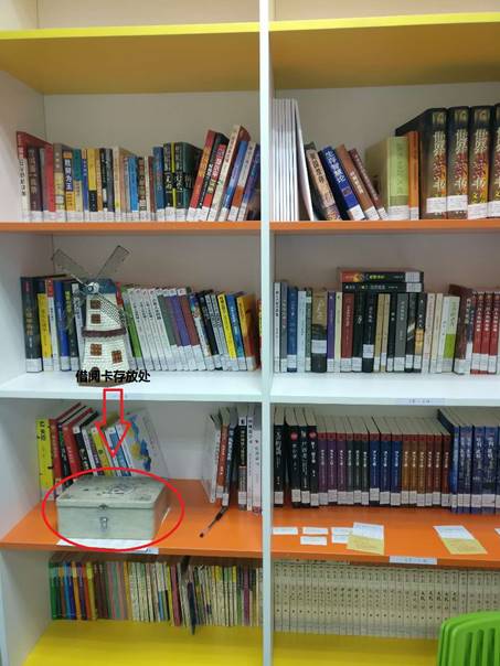3. 还书时,先在铁盒中找到该书籍的借阅卡,在相应位置填好还书日期后,将借阅卡插回图书最后一页的卡槽中,将图书归还原位即可。