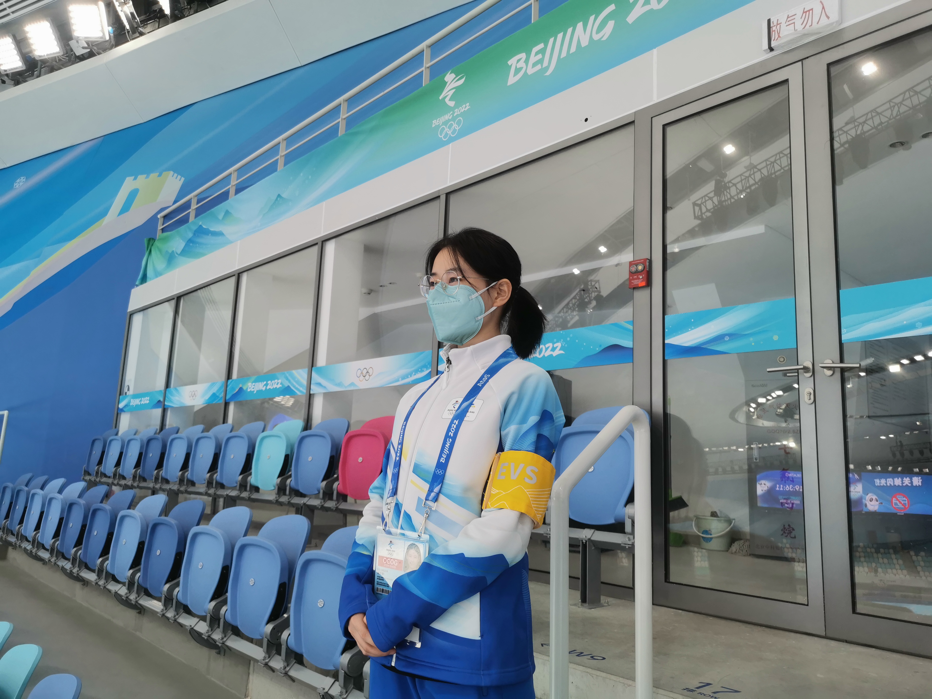 今天是2月14日,北京2022冬奥会已过半程,我很荣幸成为赛事服务领域的一名志愿者。我的岗位是看台引导,主要负责赛前引导观众快速入座,赛后疏导观众有序离场,赛时时刻关注观众是否佩戴好N95口罩,提醒观众们注意防疫要求和观赛行为准则等。在条条框框严格的工作要求之外,我们最大的期待还是希望观众能体会到宾至如归的感觉。负责看台引导的志愿者的工作点位是在比赛的场馆内,因此很感恩能够有机会亲身感受到比赛现场的氛围以及亲眼见证多次新的奥运纪录和一次新的世界纪录,更是为中国在冬奥会速滑项目上的男子首金感到无比兴奋和自豪!