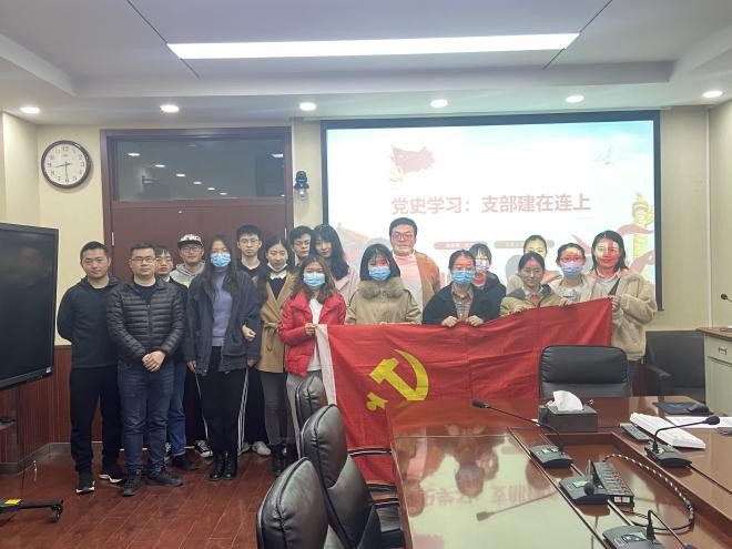 2021年3月20日,成人色情 研究生第二党支部书记黄思羽在科技楼608主持召开了主题党日活动,主题是党史学习--支部建在连上。