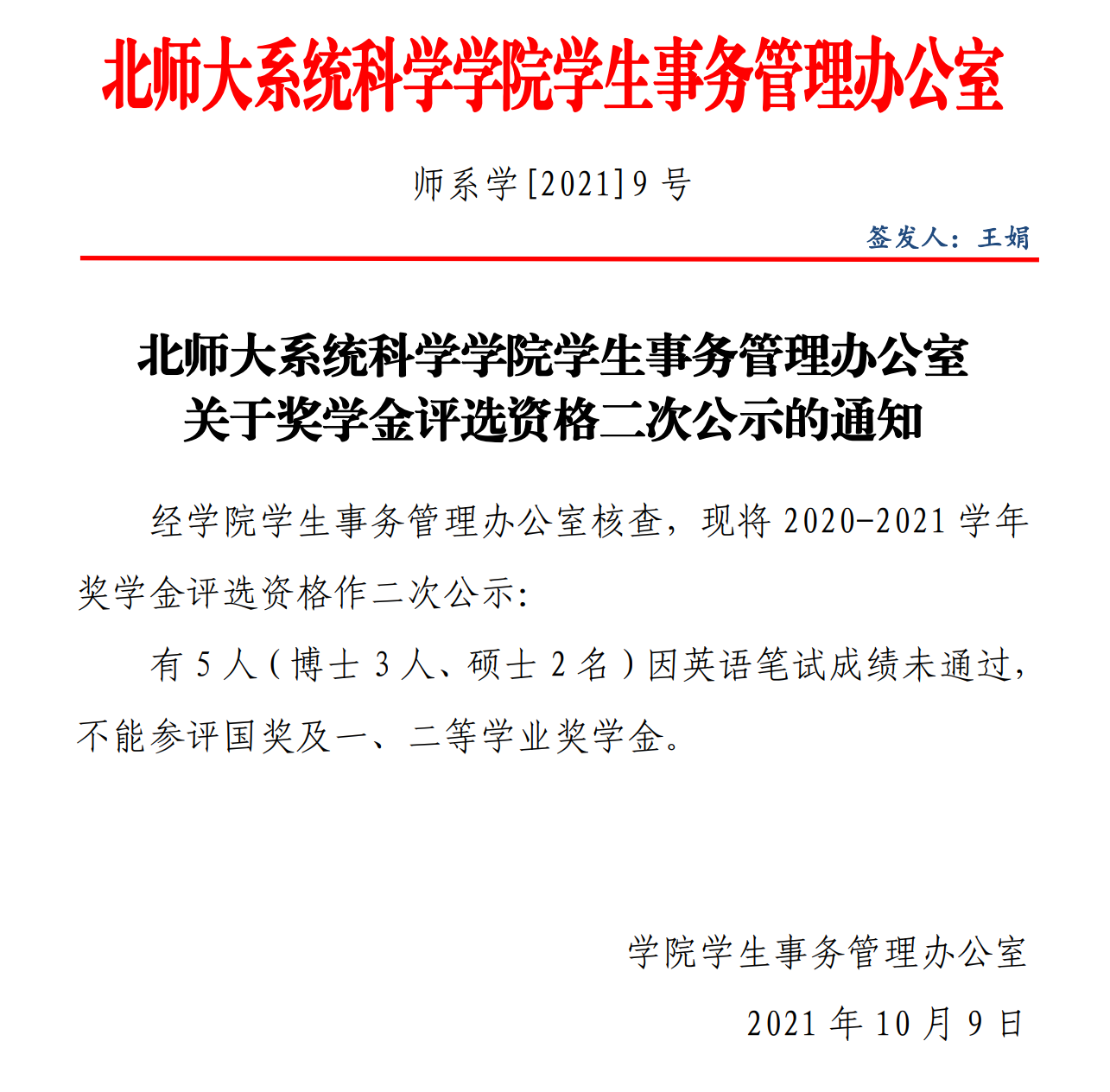 关于奖学金评选资格二次公示的通知