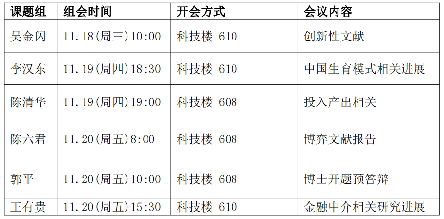 下周组会汇总信息如下:
