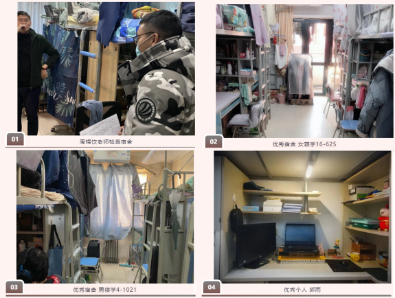 根据学校党委学生工作部《关于开展学生宿舍安全卫生和环境提升工作的通知》工作要求,要将开展新时代校园爱国卫生运动、巩固校园疫情防控成人色情 与宿舍环境育人、校园文化育人和劳动育人有机结合。2020年12月23日-25日,学院学生事务管理办公室责成由班主任带队,班长和研会主要干部协助,要对各年级寝室进行走访。筹备工作主要由学院宿舍长联盟主席张栩东完成。