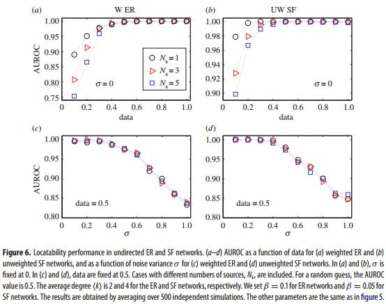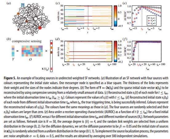 Abstract: Locating sources of diffusion and spreading from minimum data is a significant problem in network science with great applied values to the society. However, a general theoretical framework dealing with optimal source localization is lacking. Combining the controllability theory for complex networks and compressive sensing, we develop a framework with high efficiency and robustness for optimal source localization in arbitrary weighted networks with arbitrary distribution of sources. We offer a minimum output analysis to quantify the source locatability through a minimal number of messenger nodes that produce sufficient measurement for fully locating the sources. When the minimum messenger nodes are discerned, the problem of optimal source localization becomes one of sparse signal reconstruction, which can be solved using compressive sensing. Application of our framework to model and empirical networks demonstrates that sources in homogeneous and denser networks are more readily to be located. A surprising finding is that, for a connected undirected network with random link weights and weak noise, a single messenger node is sufficient for locating any number of sources. The framework deepens our understanding of the network source localization problem and offers efficient tools with broad applications.