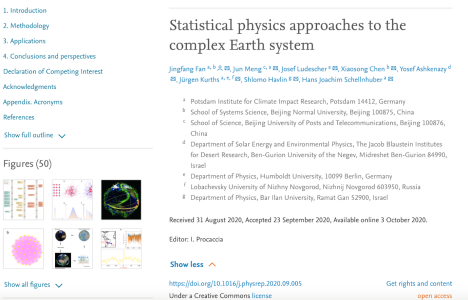 近日成人色情 陈晓松教授团队在物理学顶级期刊Physics Reports杂志上发表题为:《Statistical physics approaches to the complex Earth system》的综述文章。