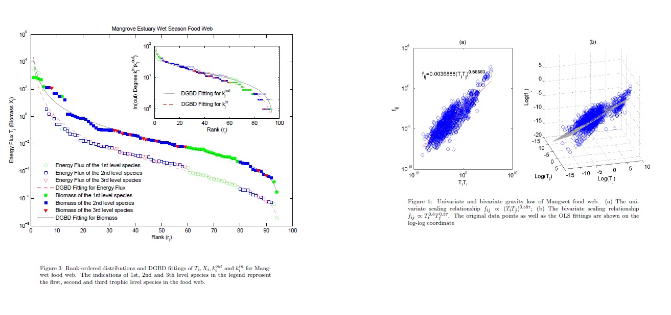 以往对于生态食物网的研究大多集中在网络的拓扑结构上,而忽略了网络上的流量信息。当我们将流量考虑进来,就发现了一些新的普适的统计规律,包括:物种总生物量与总新陈代谢的异速标度律、物种总耗散与总流量之间的”耗散律“,以及流量之间的”引力定律“等等。