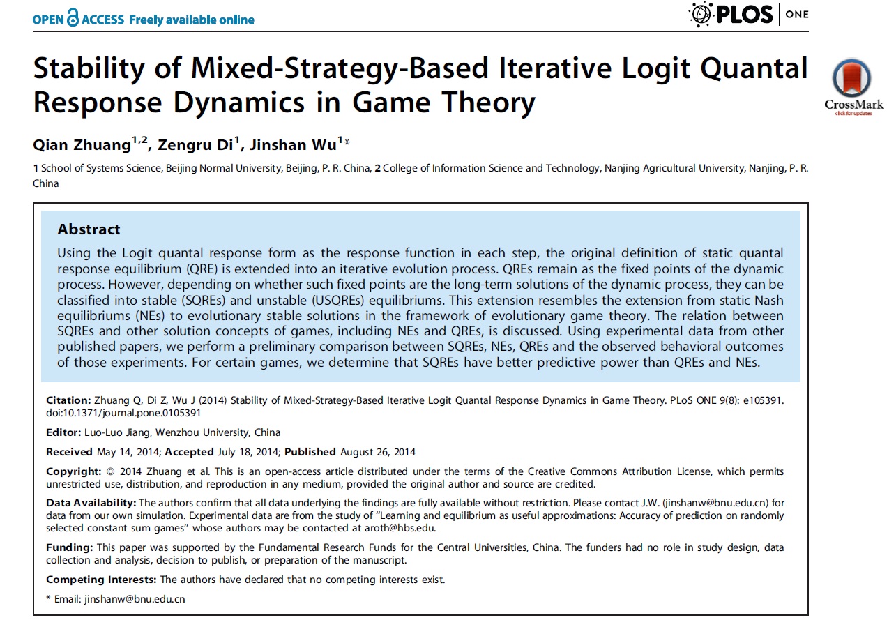 研究成人色情 :Stability of Mixed-Strategy-Based Iterative Logit Quantal Response Dynamics in Game Theory, Qian Zhuang, Zengru Di, Jinshan Wu, Published: August 26, 2014DOI: 10.1371/journal.pone.0105391