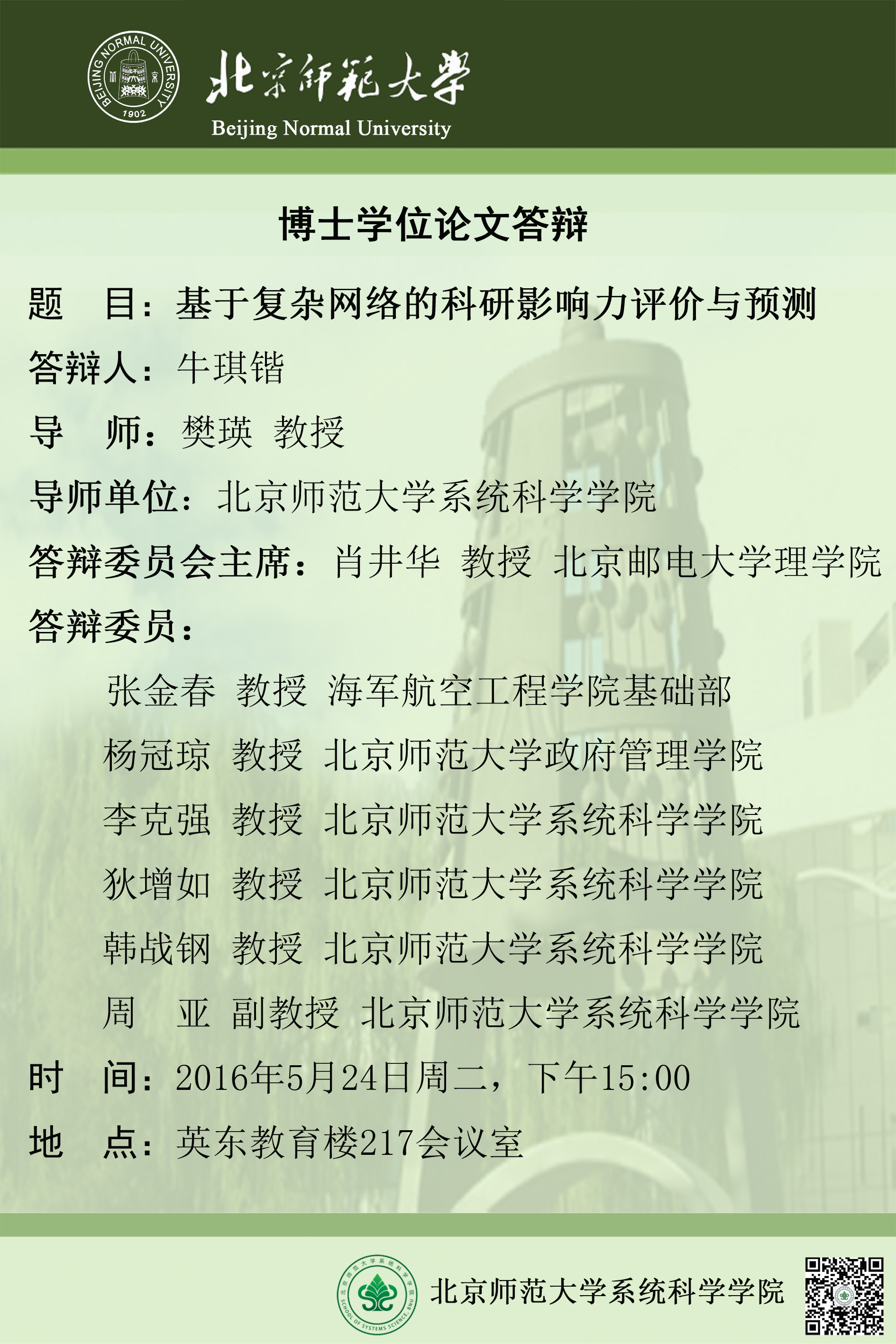 [博士答辩] 基于复杂网络的科研影响力评价与预测