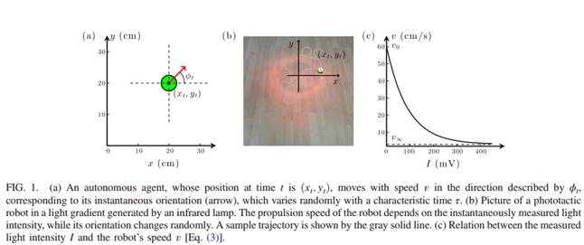 生物通过自发的相互作用可以实现集群行为,比如细菌可以通过释放化学物质作为信号表明自己的存在。科学家从中受到启发,用可以发出衰减性光亮的趋光性机器人,通过控制机器人感知信号和作出反应之间的时间间隔,实现个体和群体长期的行为,比如分散、聚集和集群行为。其中,延时可以用来改变机器人对感知到的光强作出反应时的排斥速度。该项研究未来可以用于大规模的活性个体的集群行为控制,例如无人机三维飞行控制等。
