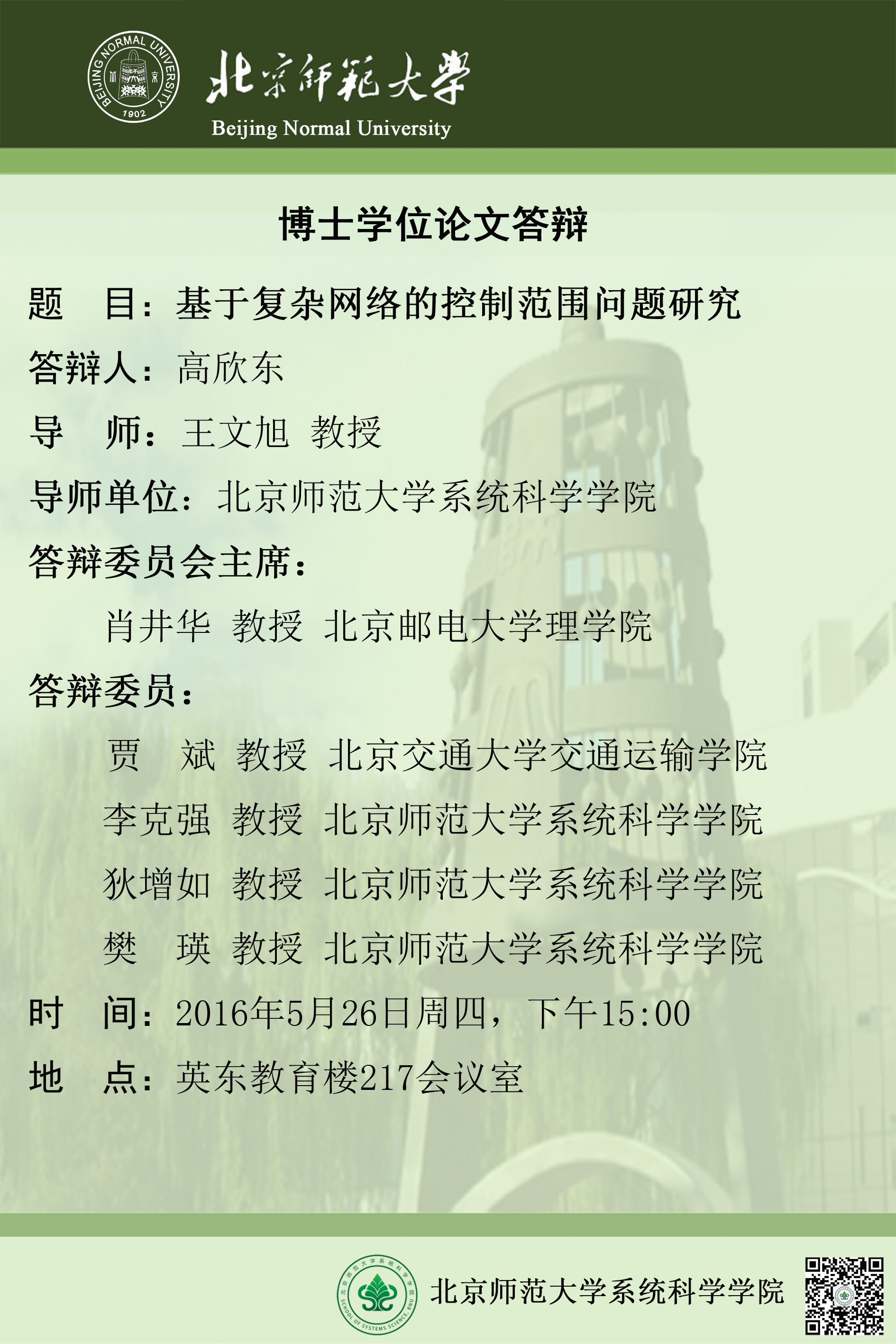 [博士答辩] 基于复杂网络的控制范围问题研究