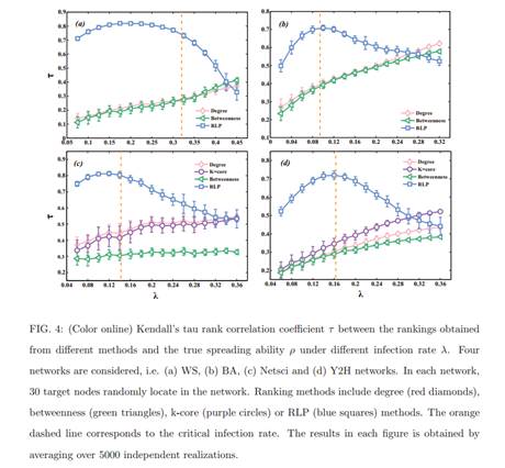 简介:传播作为一种重要的动力学被广泛地用于模拟许多真实的过程,例如流行病和信息的传播。其中一个最重要的研究问题就是为节点的传播能力排序。为了这个目的,已经有一系列有效的方法被提出。这些方法通常定义node i的传播能力为在给定最初传播源node i的情况下,它最终感染的网络中节点的数量。但是,在很多真实的情况下,例如广告和新闻传播,我们的目标仅仅是感染网络中一部分的目标节点。因此,非常有必要去研究对那些局域的目标节点的节点传播能力。在这篇文章中,我们提出了一种逆向局域路径的方法(RLP)来解决这一问题。仿真结果显示,我们的方法在识别那些对于局域的目标节点有影响力的节点方面比现有的方法好。除此之外,被我们的方法所识别的有影响力的节点还可以在传播过程中有效地避免感染那些非目标节点。