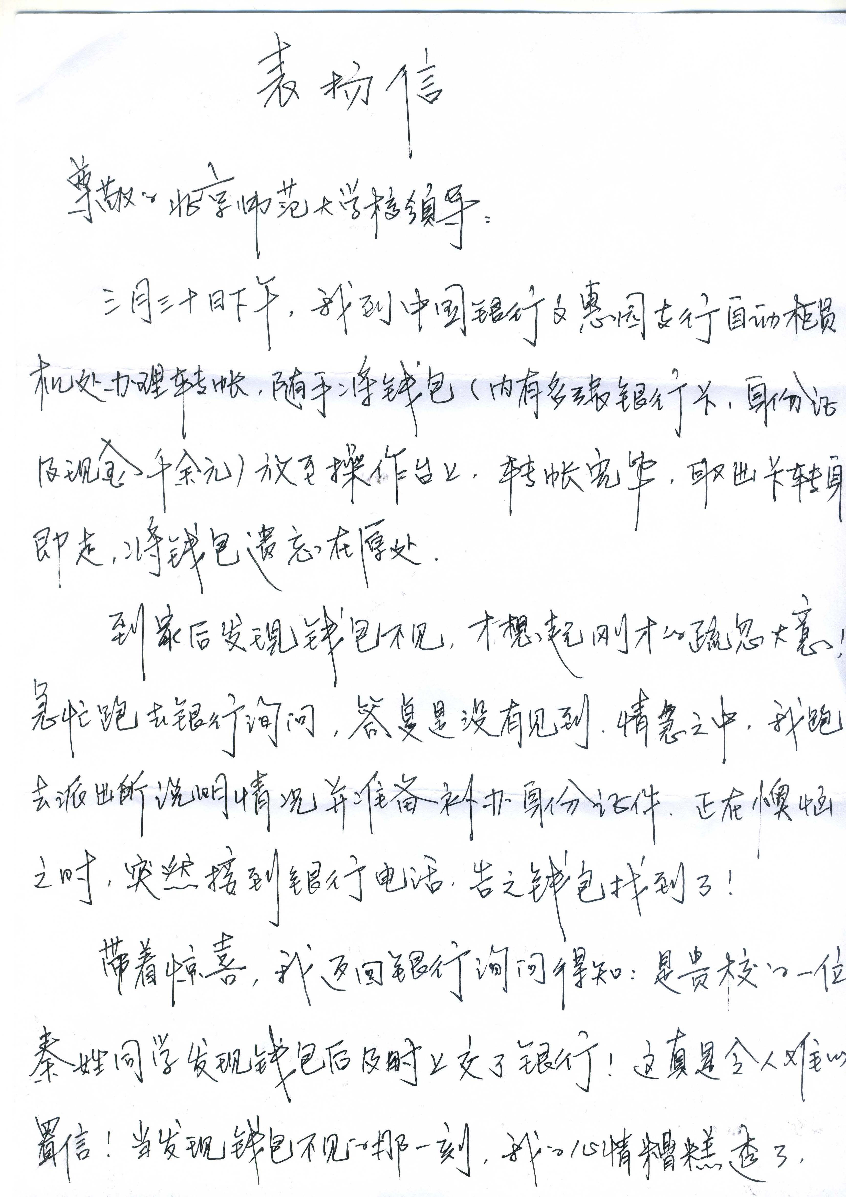4月10日,经过辗转寻找,钱包失主王女士将感谢信送到成人色情 ,并对秦磊同学拾金不昧的行为表示赞扬和感谢。