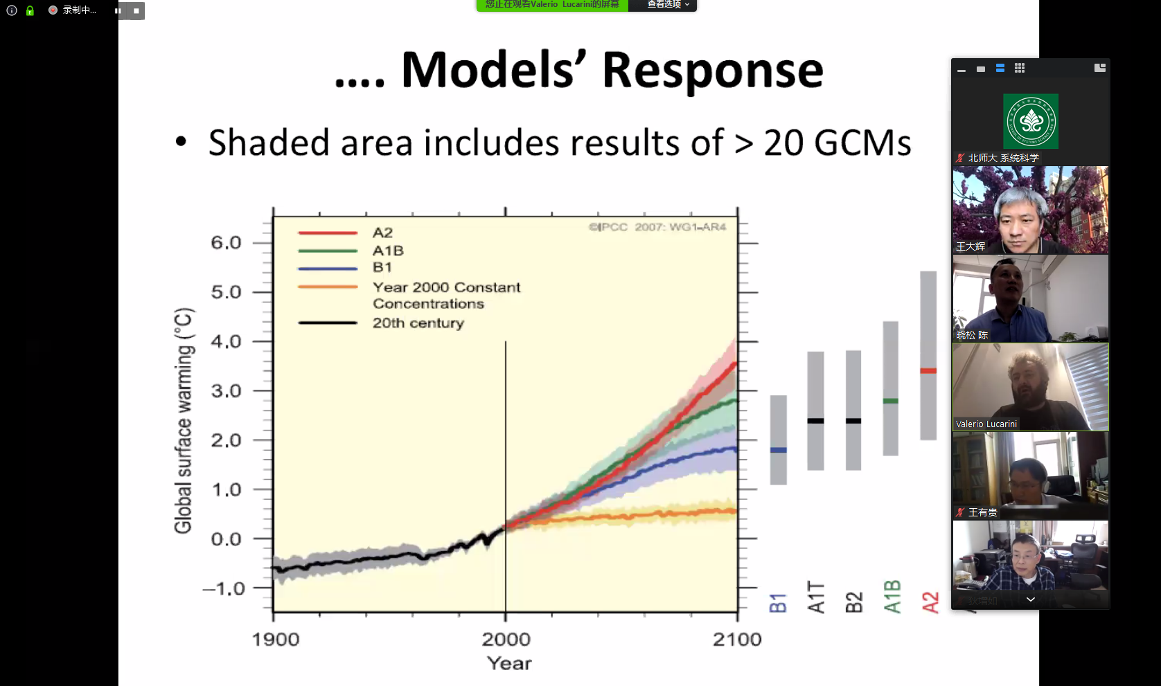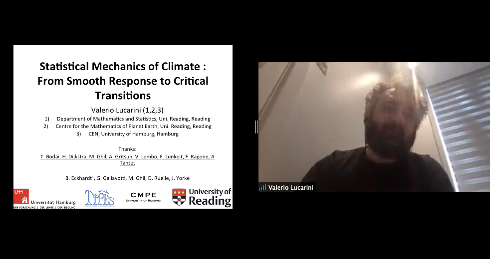 2020年4月30日下午,成人色情 邀请英国雷丁大学Valerio Lucarini教授为全院师生进行了主题为“Statistical Mechanics of Climate”的线上讲座。讲座由成人色情 院长陈晓松教授主持,全院师生及来自学校物理系、地理学院和中国气象局、中科院气候所、美国夏威夷大学、集智俱乐部的专家学者和学生,逾130人参加了会议。并由集智俱乐部在bilibili网站上进行了同步直播(//live.bilibili.com/8091531),在线观看人数达到1111余人,观众反响热烈。