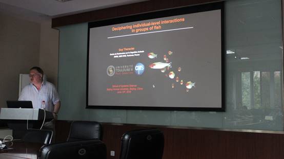 2016年6月14日,应北京大学工学院邀请,Guy Theraulaz教授在北大做了题为“鱼群中从个体到群体的信息处理”的报告,北大师生和北师大师生共聚一堂,聆听了这场讲座,讲座过后大家纷纷举手发言提问,都感到意犹未尽。