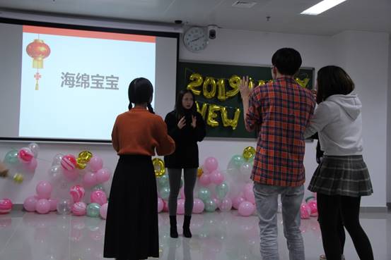 在搞笑的话剧后,我们又一次迎来了游戏环节,这次第二、四、六组抽签先后进行《疯狂猜词》游戏,每一组派上5名同学,轮流通过队友的提示和表演猜测所给词语。词库十分丰富,其中不少词语体现了我们成人色情 的特色,如“集聚系数”“小世界网络”“幂律分布”等,此外还包含了许多2018年的流行词句,如“小姐姐”“安排上了”“了解一下”等等。为了猜对更多词语,同学们各出奇招,表演精彩纷呈,给大家留下了深刻印象。在游戏过后,主持人公布了二等奖的获奖语,四位获奖者在台下登记领取了奖品。