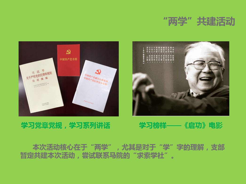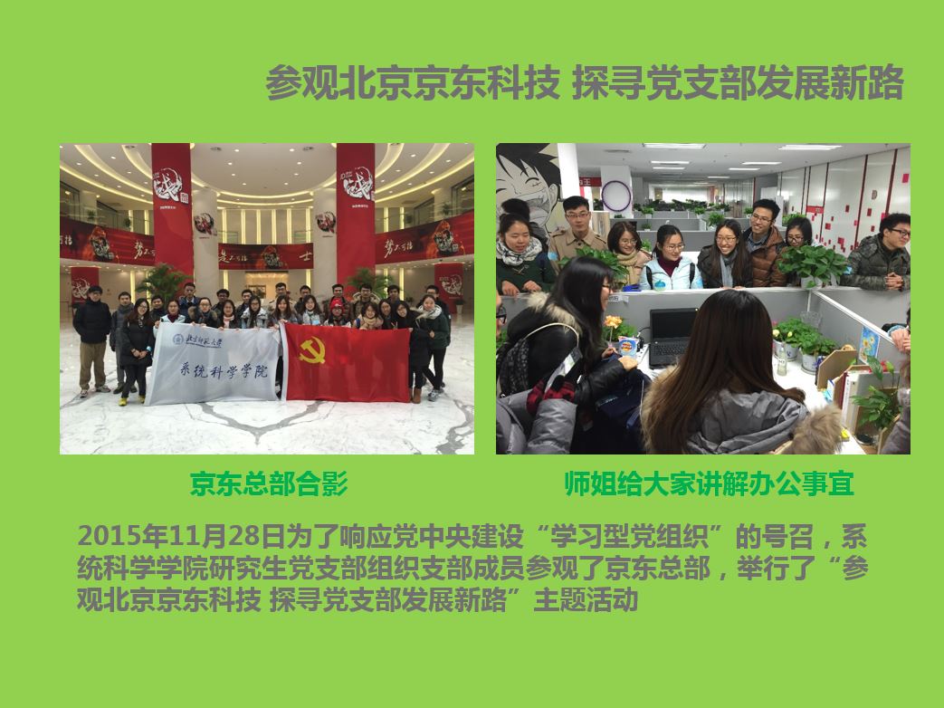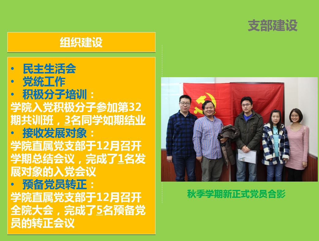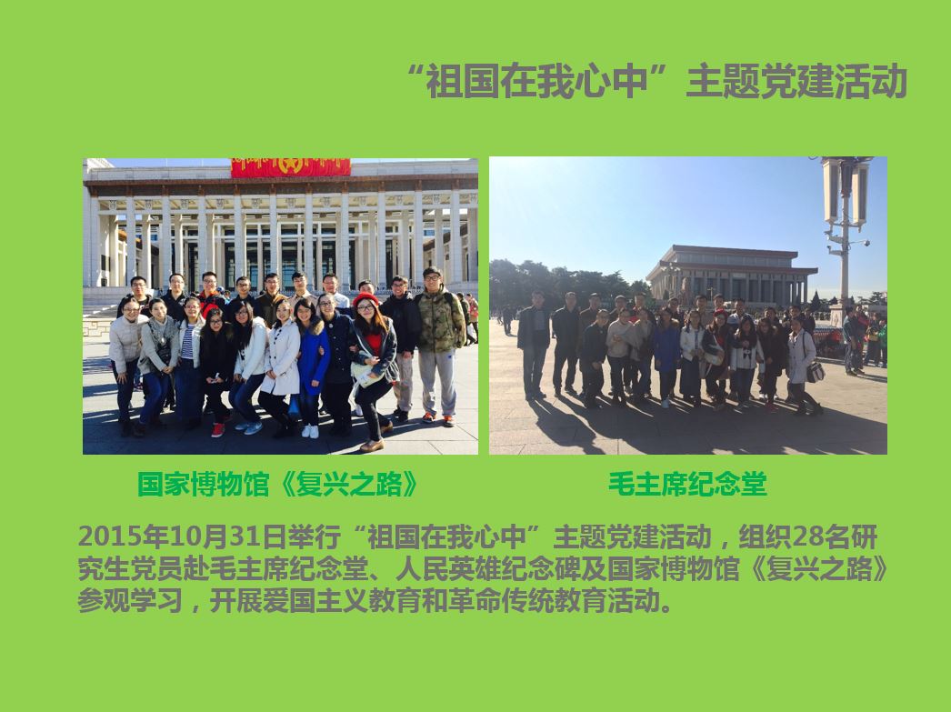 2016年,成人色情 研究生党支部按照中央要求和学校总体部署,将党建创新工作作为重点,以“深入开展‘两学一做’切实提高党性修养”为主题,在“党员先锋”工程和“党旗引航”计划的基础上,深入贯彻落实“两学一做”学习教育活动。围绕学党章党规、学系列讲话、做合格党员、学雷锋月及纪念建党95周年等主题广泛开展有特色、有内涵、有层次、有规模的党建活动,着重培养广大研究生党员的政治意识、大局意识、核心意识和看齐意识,切实加强党员教育管理与基层组织建设,不断提升研究生党建工作科学化、规范化水平,积极促进党员同学成长成才。